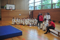Nach kurzem Aufwärmen begann das Turnier. Insgesamt 19 aktive Judoka im Alter von 6-25 Jahren traten sich in den jeweiligen 3er und 4er Pools gegenüber, leider gab es auch ein paar krankheitsbedingte Ausfälle. Sofern aufgrund des Gewichts, Erfahrung und Alter nur zwei Kämpfer in einer Gruppe eingeteilt worden sind, kämpfte diese Gruppe in einem anderen Pool mit um mehr Kampferfahrung zu bekommen. Auch ein Spaßkampf der Erwachsenengruppe und mehrere Freundschaftskämpfe wurden nach den offiziellen Kämpfen durchgeführt. Die Einteilung anhand von Alter, Kyu-Grad, Gewicht und Erfahrung machte es beispielsweise auch möglich, dass auch die Jüngsten ihr Können in einem Bodenkampf zeigen konnten. Während der Kämpfe war eine gespannte Ruhe und die Kämpfer/innen wurden hinterher von ihren Vereinskameraden und Familien bejubelt und alle waren sehr motiviert eine gute Leistung zu zeigen.