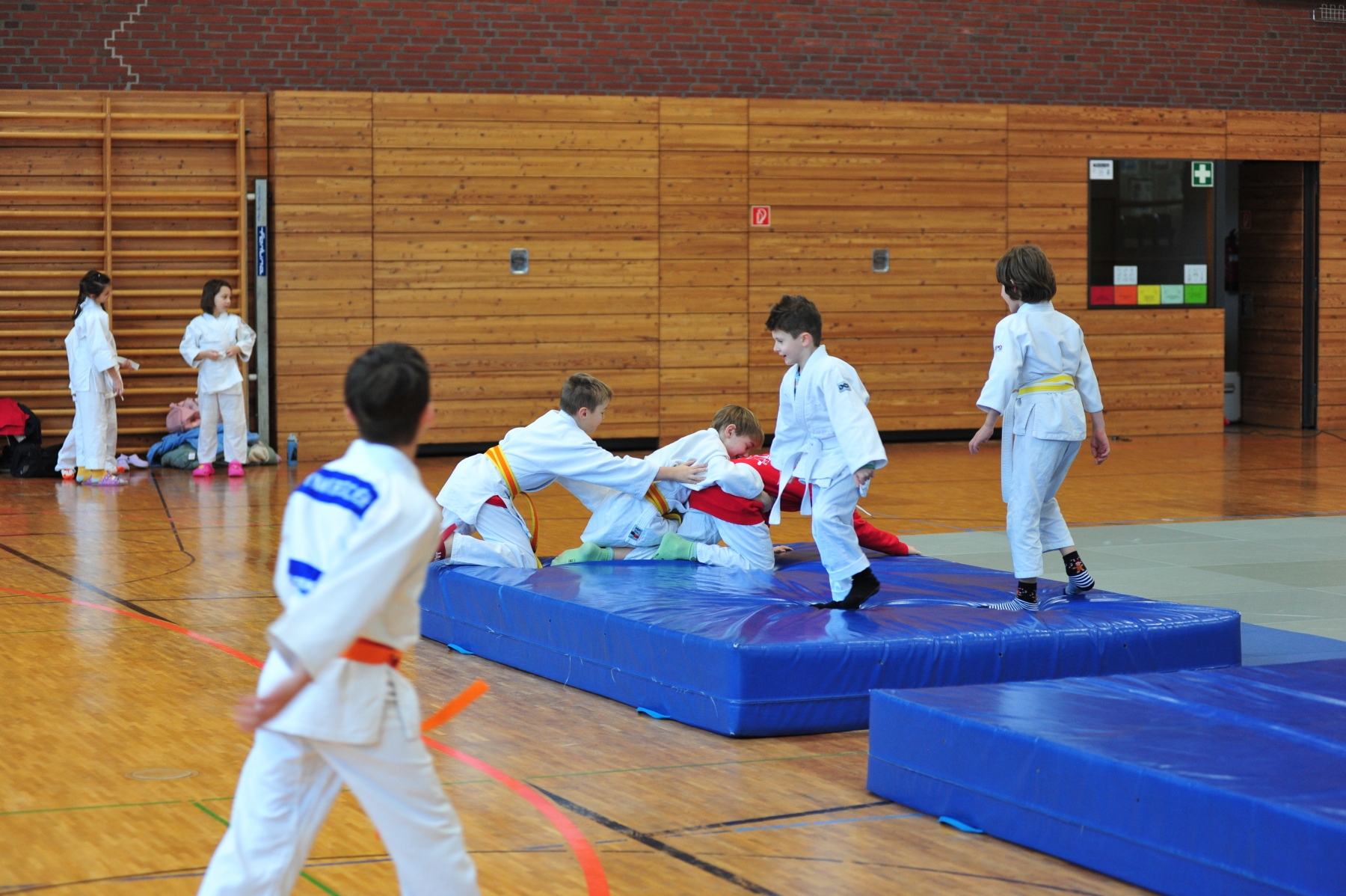 Eine gespannte Ruhe war innerhalb der Kämpfe. Besonders schön war, mit anzusehen, dass alle sehr motiviert und mit großem Siegeswillen in die Begegnungen reingingen. Jeder einzelne Kampf und Sieg wurde mit Beifall der Trainingskameraden und Familien belohnt. Insgesamt waren es sehr spannende Kämpfe mit teilweise sehr knappen, aber auch deutlichen Siegen, schönen Ippons und großem Kampfgeist. Bei der Siegerehrung gab es zur großen Freude Medaillen, Urkunden und einen kleinen Oktopus-Schlüsselanhänger (kleines Maskottchen). Auch wurden 4 Kinder für die aktivste