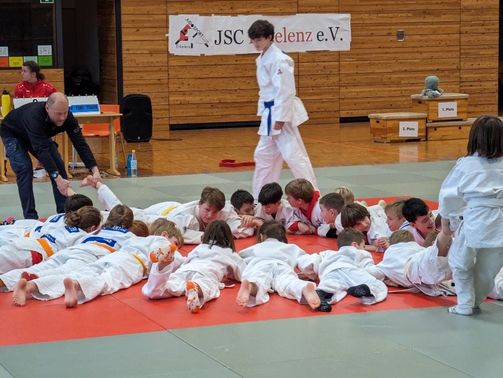 Eine gespannte Ruhe war innerhalb der Kämpfe. Besonders schön war, mit anzusehen, dass alle sehr motiviert und mit großem Siegeswillen in die Begegnungen reingingen. Jeder einzelne Kampf und Sieg wurde mit Beifall der Trainingskameraden und Familien belohnt. Insgesamt waren es sehr spannende Kämpfe mit teilweise sehr knappen, aber auch deutlichen Siegen, schönen Ippons und großem Kampfgeist. Bei der Siegerehrung gab es zur großen Freude Medaillen, Urkunden und einen kleinen Oktopus-Schlüsselanhänger (kleines Maskottchen). Auch wurden 4 Kinder für die aktivste