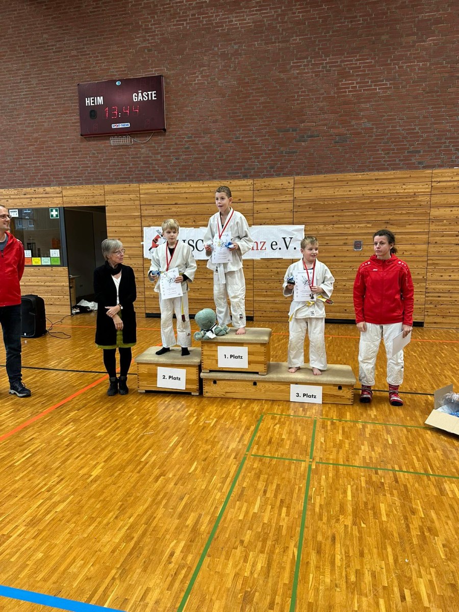 Eine gespannte Ruhe war innerhalb der Kämpfe. Besonders schön war, mit anzusehen, dass alle sehr motiviert und mit großem Siegeswillen in die Begegnungen reingingen. Jeder einzelne Kampf und Sieg wurde mit Beifall der Trainingskameraden und Familien belohnt. Insgesamt waren es sehr spannende Kämpfe mit teilweise sehr knappen, aber auch deutlichen Siegen, schönen Ippons und großem Kampfgeist. Bei der Siegerehrung gab es zur großen Freude Medaillen, Urkunden und einen kleinen Oktopus-Schlüsselanhänger (kleines Maskottchen). Auch wurden 4 Kinder für die aktivste